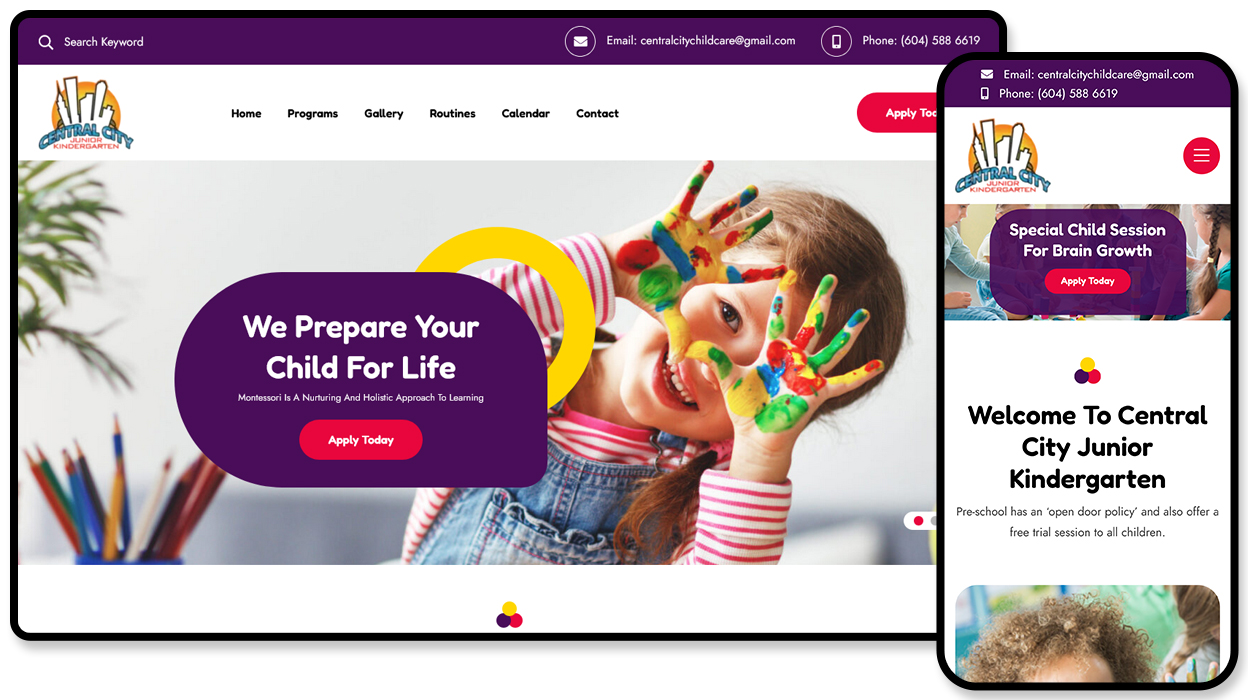 We build simple, professional websites for daycare centres. Our sites attract local families, build trust instantly, and make the enrollment process easy for everyone.